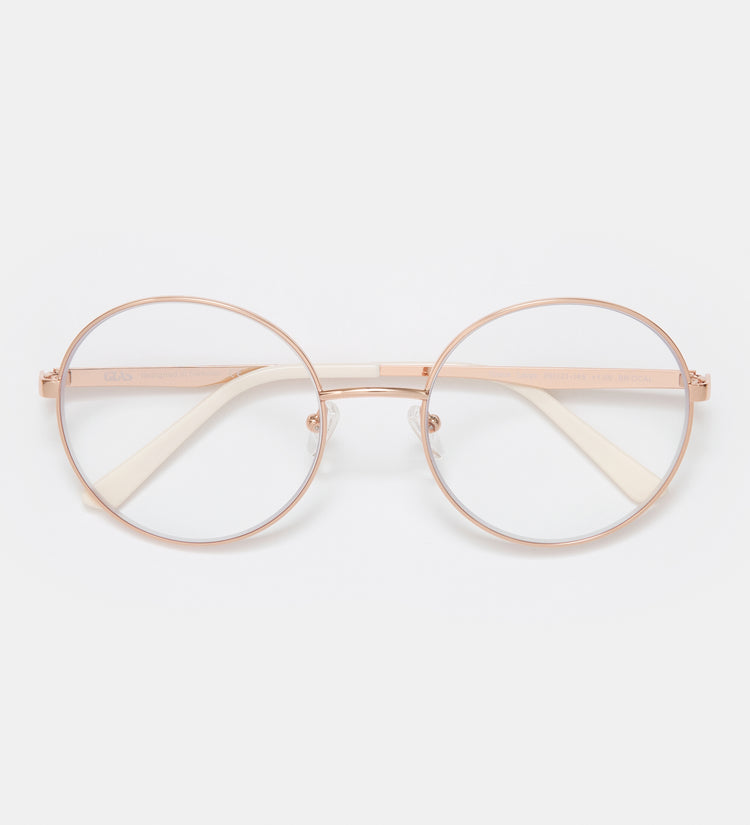 Grace Rose Gold Large Blue Light-briller har et slående rosaguldstel med en større silhuet, der er designet til at filtrere skadeligt blåt lys fra digitale skærme. Disse elegante, lette briller reducerer øjenbelastning ved længere tids skærmbrug, samtidig med at de fremhæver din sofistikerede stil, hvilket gør dem til den perfekte blanding af beskyttelse og raffineret mode.